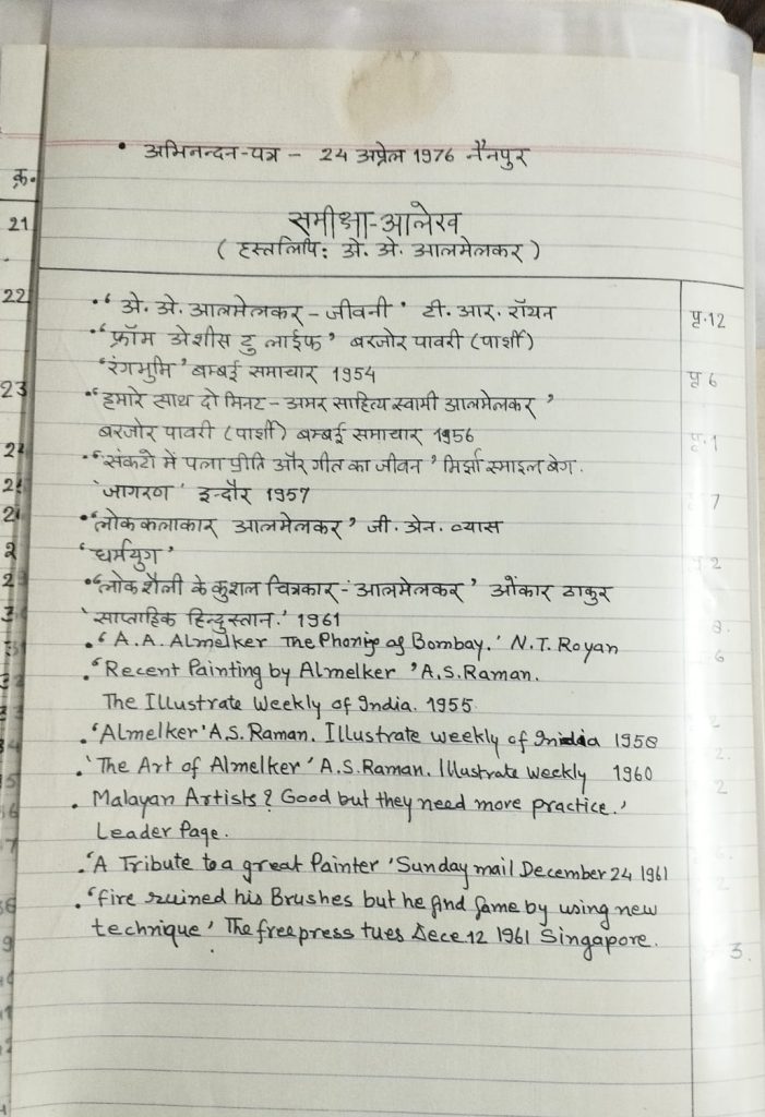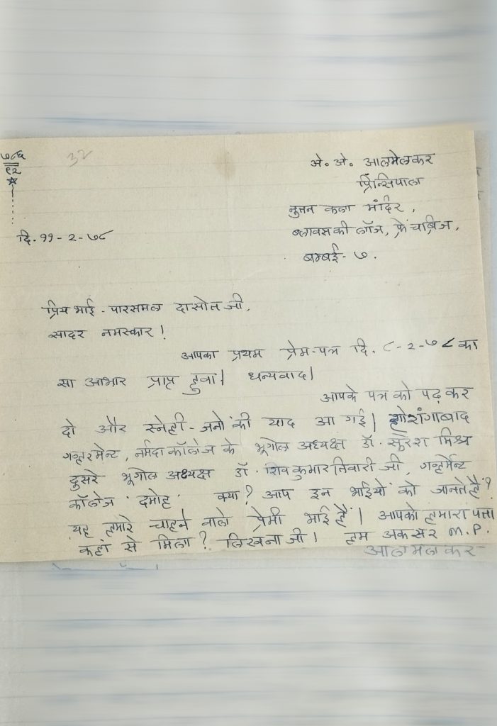 A A Almelkar’s Letters to Paras Dasot